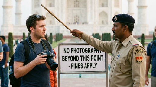 В мире есть места, где за невинное желание сделать фоточку можно нарваться на скандал, штраф или гнев местных духов. Я собрал дюжину всемирно известных локаций, где камеру лучше спрятать поглубже в рюкзак. 1. Тадж-Махал (Индия) Снаружи - пожалуйста. Фоткайтесь на фоне белоснежного купола сколько влезет, хоть в прыжке, хоть держа его за шпиль (хотя это уже моветон). Но внутри - ни-ни. Это не просто дворец, а действующая усыпальница. Снимать могилы - неуважение к мертвым. Охрана там злая и за смартфонами следит коршуном...