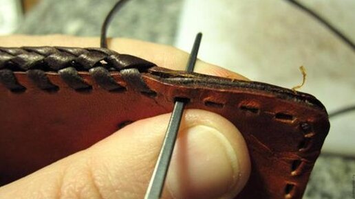 Осторожная работа с кожей. Показываю как шить кожу простым шилом. Техника шитья
