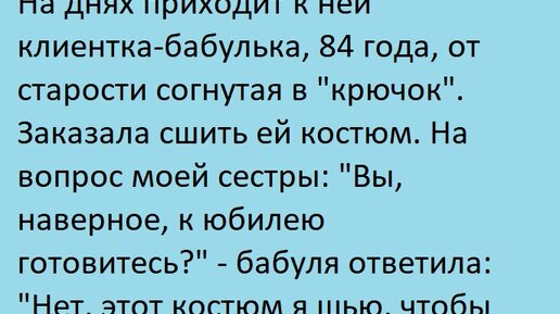 Жизненные и занятные, связанные с шитьем истории: у кого-то жизнь сделала крутой поворот, кто-то потерял любимого человека, а кто-то до сих пор смеется, вспоминая историю с пошивом. Все истории не вымышленные, прочитаны и пересказаны своими словами без имен. 1. Моя сестра работает в престижном ателье, шьют действительно шедевры, клиенты не с улицы. Недавно к ней обратилась клиентка - очаровательная элегантная старушка 84 лет. Время не щадит никого, и старость изогнула ее, словно "крючок", но вид весьма цветущий, насколько можно выглядеть в ее года...