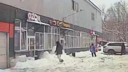 Наледь упала на голову девушки в Подмосковье, момент ЧП попал на видео