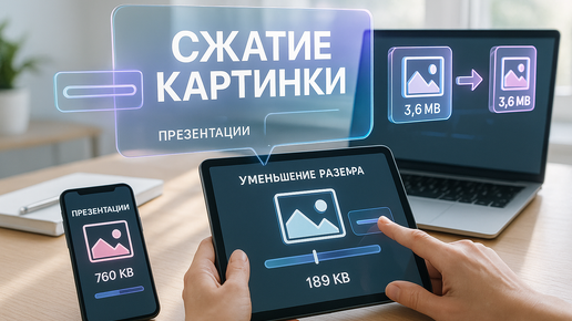 Презентация с фотографиями весит 50 МБ и не отправляется по почте? За 5-10 минут можно сжать все картинки и уменьшить размер файла в 5-10 раз. В этой инструкции разберем, как сделать презентацию легче без заметной потери качества изображений. Тяжелые презентации не только долго отправляются, но и могут зависать при открытии. Основная причина большого размера файла — несжатые фотографии и картинки. Один скриншот с телефона может весить 3-5 МБ, а таких картинок в презентации может быть десятки. Проблема решается быстрым сжатием изображений прямо в презентации...