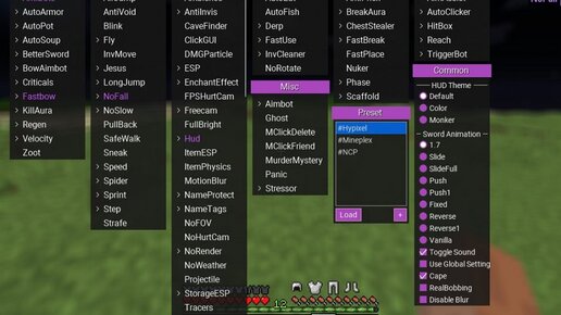 Чит-клиент Flux — самый популярный чит для Minecraft 1.8.X. Этот агрегатор функций множества лучших читов получил огромную поддержку и популярность за то, что все это работает без багов. Флюкс используют на Hypixel, Mineplex, FunnyCraft и других топовых серверах, где играет много известных людей. Создателем чита является Ayataka