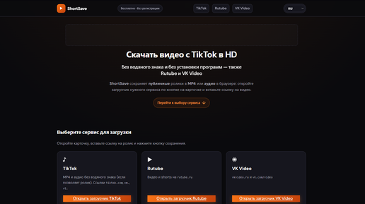 Когда нужно быстро сохранить ролик по ссылке, большинство сервисов либо перегружены рекламой, либо требуют лишние действия. Я протестировал разные варианты и остановился на ShortSave — это онлайн-сервис, который работает прямо в браузере: без установки, без сложной регистрации и с понятной логикой «вставил ссылку — скачал файл». Главный плюс для меня — универсальность. На одном сайте можно работать сразу с тремя платформами: TikTok, Rutube и VK Video. Особенно удобно, когда нужно сохранить видео в MP4 или забрать только аудио для личного использования...