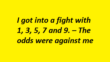 Ребят, привет! Сегодня решила затронуть тему чисел в английском языке, поскольку мои ученики ну очень часто впадают в ступор при виде какого-нибудь числа из серии 25 364 или 124 852, хотя, на самом деле, ничего сложного в их произношении нет. Кстати, на заставке к этой статье написана joke about numbers. Поняли, в чем там каламбур? I got into a fight with 1, 3, 5, 7 and 9 – The odds were against me. На первый взгляд перевод выглядит следующим образом: Я подрался с 1, 3, 5, 7 и 9 - Шансы были против меня...