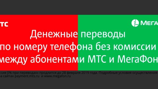 Внимание! До 28 февраля 2019 года все переводы денег между номерами абонентов «МТС» и «Мегафон» без комиссии! Понимая важность опции, операторы пошли на такой шаг и временно отменили комиссию... Проверьте сами: perevod...