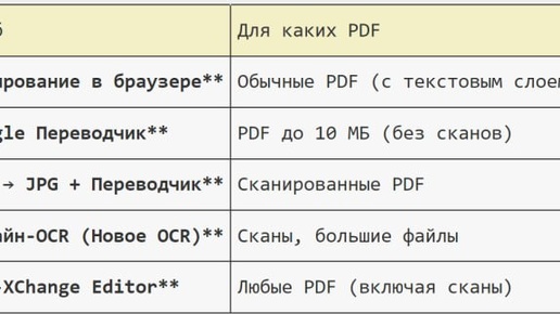 📌 Как скопировать текст из PDF бесплатно (полная инструкция) Техносовет 🔹 Проверяем простой способ — Откройте PDF в браузере (Chrome/Firefox). — Попробуйте выделить текст → Ctrl+C. — Если копируется — отлично! — Если нет — читаем дальше. 🔍 Вариант 1: Google Переводчик (для файлов до 10 МБ) — Если PDF обычный (не сканированный) Перейдите на Google Переводчик. Нажмите «Документы» → загрузите PDF. Переводчик покажет текст → копируйте его. Если PDF больше 10 МБ — Сожмите файл (если >10 МБ): Smallpdf Compress (бесплатно, до 50 МБ)...