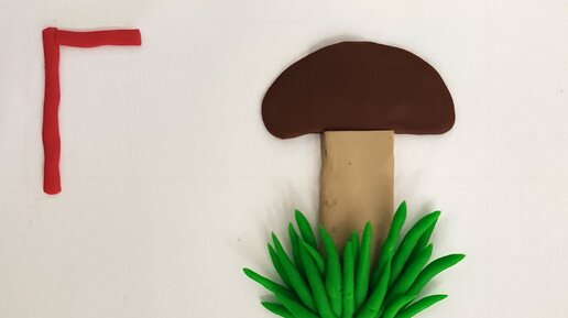 Аппликация из пластилина на картоне " Алфавит - буква Г". Лепим гриб.