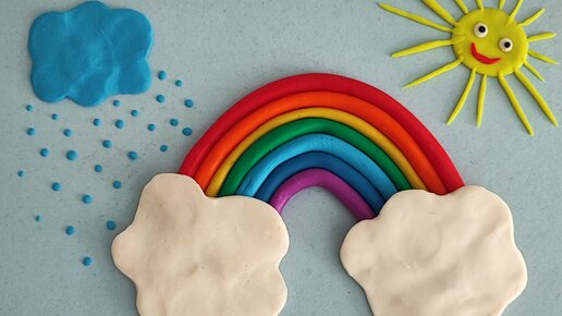 Аппликация из пластилина на цветном картоне " Радуга 🌈 в облаках". Пошаговая инструкция с фото для детей.