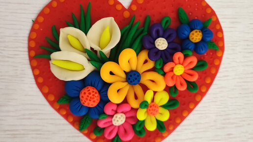 Объёмная аппликация из пластилина на картоне " Сердечко в цветах". Пошаговая инструкция с фото для детей.