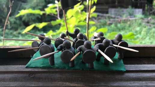 Для создания этого отряда потребовалось 15 минут. Начинающим может потребоваться чуть больше времени, но после тренировки ыф сможете быстро делать целые армии! Материалы: пластилин, зубочистки и кусочек картона (для создания подставки). Смотрите видеоурок моего авторства по созданию подобных человечков: Для создания этого отряда потребовалось 15 минут. Начинающим...
