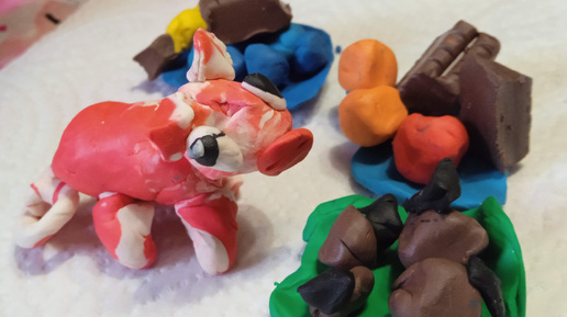 Всем привет. Сегодня у нас было много лепки - дети обновляли недавно купленные большие наборы пластилина. Сын-второклассник, кстати, недавно захотел вести свой канал: Там сегодня выложил МК по лепке божьей коровки на цветке. Дочка тоже захотела поделиться частью неисчерпаемого творческого процесса. Итак, как слепить поросёнка - небольшой МК от шестилетней дочки. ) Лепила она на основании собственной фантазии, без схем и описаний. Вот такой симпатичный поросёнок получился. Точнее, это Хрюша, девочка...