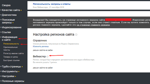 Как изменить региональность сайта в Яндексе