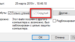 Что делать, если атрибут скрытый заблокирован у файла или папки