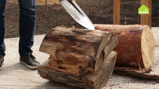 Подготавливаем кругляк для строительства дома. Возьмите лопату и удалите кору с бревна. Данный инструмент подходит для грубой очистки. Свежую кору легко снять с дерева. Возьмите скобель и с его помощью уберите черноту и остатки волокон, обработав дерево начисто...