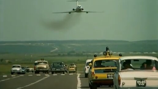 Все помнят сцену с посадкой самолета из советской комедии о приключениях итальянцев. Тогда, чтобы ее снять, пришлось приложить немало сил: компьютерной графики не было, кино снимали на пленку, так что был задействован настоящий самолет Ту-134, а вместо шоссе использовалась полоса аэродрома. Напомню этот фрагмент, вошедший в золотую коллекцию отечественного кинематографа: Но вот какой момент, на который почти никто не обращает внимания. Самолет летит в Москву, садится на Минскую автостраду. А вот все машины почему-то едут сплошь с ульяновскими номерами...