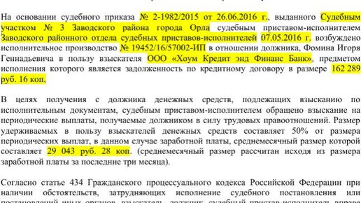 Как я уже писал в этой статье исполнительный лист о взыскании задолженности по кредиту, кредитной карте или займу рано или поздно окажется у пристава. В этой статье описано имущество и доходы, которые могут взыскать у должника. Пристав может наложить взыскание на 50% (это максимальный размер удержания по «кредитным» долгам) заработной платы, пенсии или любуй другуй периодический доход. Сегодня рассказываю о том, как снизить этот процент. План статьи: Почему 50%? Когда исполнительный лист о взыскании задолженности оказывается у пристава, он возбуждает исполнительное производство...