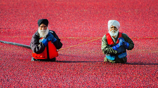 Багровые реки. Как собирают клюкву в промышленных масштабах, используя трактора с молотилками