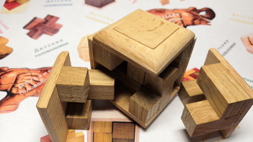 Головоломка состоит из 6 элементов и предназначена для детей от 7 лет.