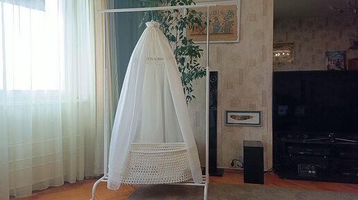 За долго, до рождения внука купила донышко, и всё необходимое. Но всё никак не могла определиться с выбором, связать или сплести люльку. Просмотрела и прослушала много разных видео, МК. Очень понравились варианты плетёных колыбелек, но плести всё же не решилась. Опыта в плетение макраме у меня почти нет. А вот вязание, это моё. Выбор был сделан в пользу вязаной модели. Чёткого описания у меня не было, и я решила, будь что будет. Потренировавшись на маленьком макете(Люлька для куклы. Связана крючком...