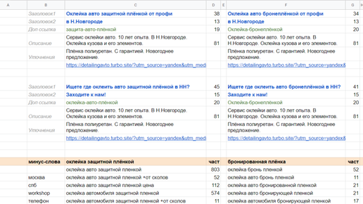 Хочу поделиться шаблоном и тем, как я собираю тексты и семантику для контекстной рекламы в Яндекс Директе. Речь в первую очередь не о том, какими сервисами парсить слова и группировать их в дальнейшем, а о том, как и где собрать эти готовые группы слов и прописать под каждый сегмент уникальное объявление. Это особенно важно, когда у продвигаемой компании жесткие требования к Tone of voice или проще говоря фирменному стилю выраженному в текстовой форме. А больше полезных материалов можно найти в моём блоге...