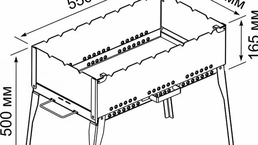 Для изготовления простого мангала вам понадобятся материалы: Инструменты: Теперь нужно определиться с размерами будущего мангала. Оптимально изготовить мангал на 9 шампуров, расстояние между шампурами должно быть 60 мм, это примерно 540 мм ширина мангала. На шампур нанизывается около 6 – 8 кусочков мяса, значит, ширина мангала должна быть, где то 300 мм. Не стоит делать слишком широкий мангал, жар от углей должен равномерно прогревать мясо на шампурах, а для большого мангала понадобится больше углей...