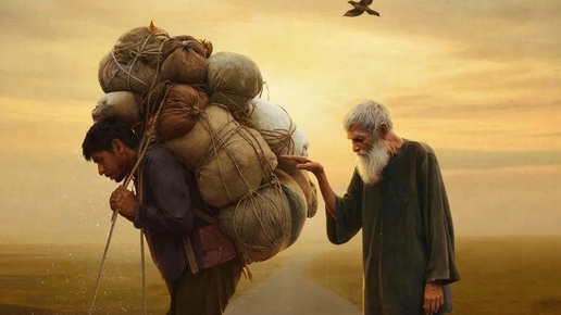 Шёл как-то старец по пыльной дороге и встретил человека, согбенного под непомерной ношей. Мешки, узлы, ящики — казалось, он несёт на себе целый мир. По лицу его струился пот, а глаза смотрели в землю без надежды. 🔵— Сын мой, — остановил его старец, — куда ты путь держишь с такой тяжестью? — В будущее, — простонал человек. — Несу всё это для счастья своих детей. — А что в твоей ноше? — Заботы прадеда, труды деда, долги отца… И мои собственные тяготы. Чтобы детям было легче. 🔵Старец присел на придорожный камень, пригласил человека отдохнуть...