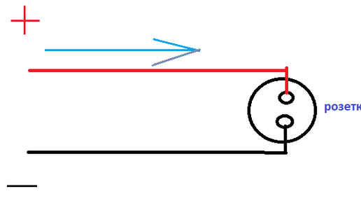 Добрый день уважаемые читатели! Данную статью пишу с целью обучить людей, которые вообще не дружат с электричеством и банально не знают как подключить розетку, выключатели и лампочки. Начнем с основ, а именно того что направление электричества всегда идет от плюса к минусу. Получается, что когда вы включаете любой электроприбор в розетку, то напряжение пойдет через этот электроприбор и вернется обратно на минус. По картинке покажу как протекает этот процесс стрелками. И так, с направлением мы разобрались...
