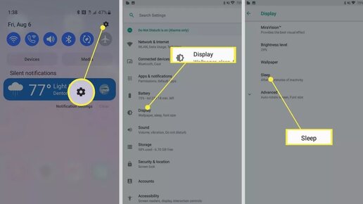 Что нужно знать В этой статье вы узнаете о трех основных способах поддержания экрана в активном состоянии на смартфоне или планшете Android. В ней вы узнаете, как изменить таймер бездействия, как использовать приложение для Android, чтобы экран оставался включенным, а также что нужно знать о функции Always on Display. Как сделать так, чтобы экран Android не выключался? Самый простой способ сделать так, чтобы экран вашего Android-устройства оставался включенным дольше, - настроить параметры встроенного режима Sleep...