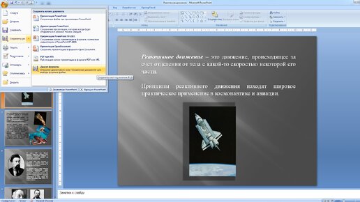 Понимаю что редко, но всё же иногда есть необходимость сохранить слайд из презентации PowerPoint в виде картинки. Разберем на примере MS Office 2007. Остаётся только зайти в папку в которой была Ваша презентация и найти папку с таким же названием как презентация, зайдя в неё обнаружим картинки для каждого слайда...