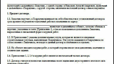 ... по такому ДОГОВОРУ можно РАБОТАТЬ! Рабочий договор подряда. Ремонт квартир.