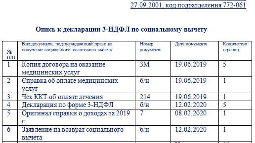 Составляем опись документов в налоговую - образец
