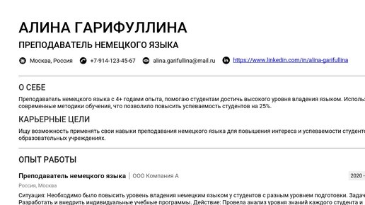Пример резюме преподавателя немецкого языка 2025 - Как составить