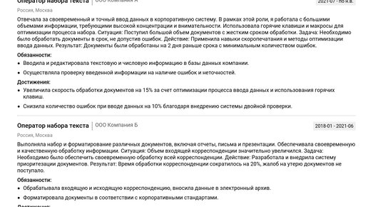 Наш пример резюме оператора набора текста — ваш ключ к успешному созданию идеального документа. Изучите готовые примеры, чтобы быстро составить эффективное резюме и получить работу мечты! В этом подробном руководстве собраны готовые примеры для специалистов разного уровня — от новичков до профессионалов 🎓. Мы дадим вам пошаговые инструкции по заполнению всех ключевых разделов резюме оператора набора текста, опираясь на актуальные требования работодателей и важные навыки. Вы найдете конкретные советы...