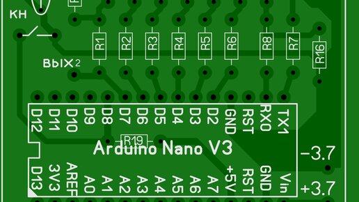 Всем доброго. Синтезатор построен на модуле Arduino. Модуль формирует последовательность импульсов на выводах D7-RX0, а резисторный ЦАП R1-R16 преобразует эту последовательность в непрерывный аналоговый сигнал. Устройство генерирует неплохую форму синусоидального напряжения - частотой от 20Гц до 20кГц. Так же этот генератор способен выдавать и прямоугольный сигнал указанных выше частот - если нужен меандр, сигнал следует снимать непосредственно с вывода D7 платы Arduino...