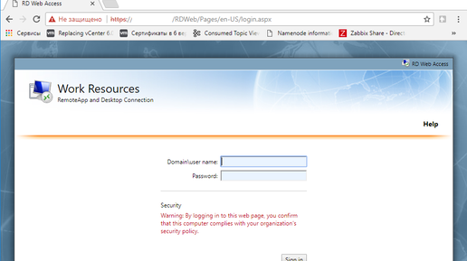 Говорят, что в Windows Server 2012 выпилили функционал по созданию rdp ярлыков на удалённые приложения. Но это не совсем так. Расскажу как сделать rdp ярлык без особых проблем. https://localhost/RDWeb/Pages/en-US/login.aspx Откройте ссылку ниже в своем браузере (не IE!), например, в Google Chrome, заменив localhost на адрес своего сервера. Выполните вход под доменной учётной записью...