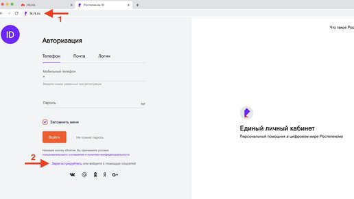 Регистрирация в личном кабинете Ростелеком
