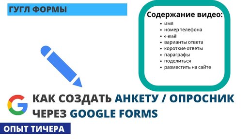Опыт Тичера6555 читали · 6 лет назадПодписатьсяКак Создать Анкету / Опросник Через Гугл Формы | Google Forms 2020