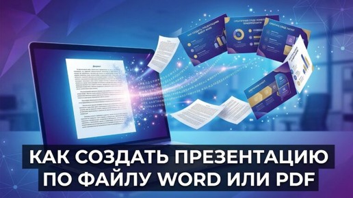 Превращаем документ в готовые слайды за несколько минут У вас есть готовый реферат в Word или отчёт в PDF, а завтра нужно выступать с презентацией. Знакомая ситуация? Переносить текст на слайды вручную — долго и утомительно. В этой статье разберём пять реальных способов превратить документ Word или PDF в презентацию PowerPoint: от нейросетей, которые сделают всё за 2–3 минуты, до встроенных функций Microsoft Office. Один из самых быстрых вариантов — сервис Presentacium. Загружаете файл DOCX или PDF, выбираете количество слайдов и шаблон — через пару минут получаете готовый PPTX с картинками...
