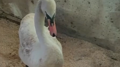 «Он остался без крыла, но не без дома». Как спасённый в Псковской области лебедь по имени Лапуша проводит зимовку
