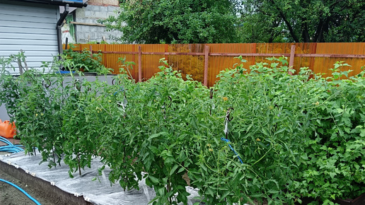 Но я все равно попыталась. Увидев такой прогноз, а у нас и так уже не сад, а одна большая лужа, я решила попытаться.. Грядки огорожены и это упростило задачу. Решила натянуть стрейч пленку над землёй и зафиксировать к бортикам. Ещё думала весной, что нужно высадить томаты на плёнку, для подстраховки от ливней. Но физически не смогла успеть.. Вот сделала для перцев и баклажанов и арбуза и больше не успела.. В том году 50% помидоров у меня треснуло во время таких ливней треснуло, а некоторые просто разрывало...