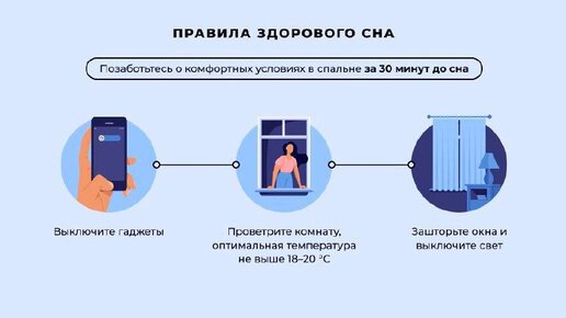 Сон — важная часть нашей жизни. Увы, мы часто не уделяем ему должного внимания, за что можем поплатиться бессонницей, нехваткой сил и энергии, слабым иммунитетом. Между тем, правила здорового сна довольно просты и легко выполнимы! Не верите? Тогда давайте разбираться вместе! Факт: Сон – это источник хорошего настроения, красоты и крепкого иммунитета. Польза сна Во-первых, во время сна организм отдыхает. В нем протекают восстановительные процессы, за счёт чего происходит восполнение запасов энергии, продолжается рост и деление клеток...