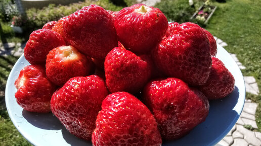 В этом году отличная ягода! Крупная, сочная - жаркое лето и обильные дожди сослужили хорошую службу к моменту ее созревания. Кроме того, я ее пару раз подкормила мульчированием запаренной скошенной травой с последующим поливом и в период цветения опрыскиванием по листу комплексным водорастворимым удобрением для ягод. Сорт садовой земляники Корона растянутого срока созревания. На плодоножке рядом со спелыми крупными ягодками ещё завязываются новые. Это очень удобно - ягоду можно собирать достаточно продолжительное время...