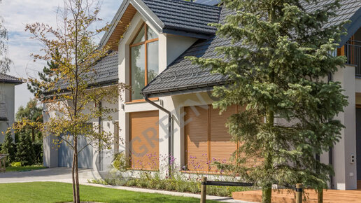 Территория участка площадью 1500 м² разделена на несколько частей с разными функциями. Сад выполнен в современном стиле, но растительность подобрана таким образом, чтобы его планировка соответствовала не только дизайну дома, но и окружающему ландшафту...