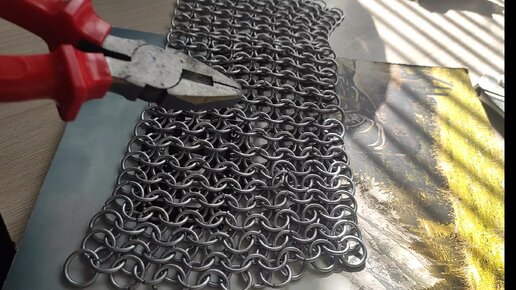 Чтобы сделать кольца для кольчуги, нужно накрутить проволоку на трубку и получить пружинку. Жалко что иногда получаются такие неприятности: проволока накручивается и портит кольца. Но нужно брать и крутить. Когда мы уже сделали пружинки, их нужно порезать в кольца кусачками. Эх, нудное занятие, но ничего не поделаешь. Столько колец вполне хватит, чтобы осваиваить разные виды плетений. Начнём с самого простого - 4 в 1. Это плетение было самым первым, используемым для кольчуги. Начнём. Сводим/соединяем кольца, для этого понадобится пара плоскогубц...
