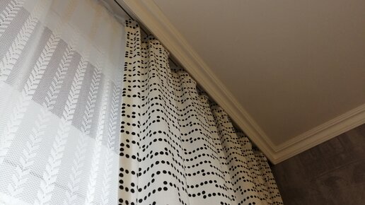 Статья для тех, у кого квартира в панельном доме с потолком, состоящим из 1 цельной плиты на комнату! Начну с того, что мне не хотелось тратить деньги на какой-нибудь дорогой карниз или гардину, хотелось чтобы его вообще не было видно. Такой вид карниза называется "скрытым" и я стала думать как его воплотить с минимальными затратами. Чтобы карниз сделать скрытым прибегают к помощи постройки натяжного потолка или вовсе делают многоуровневым. Мне эти варианты не подходили, так как это дополнительные затраты...