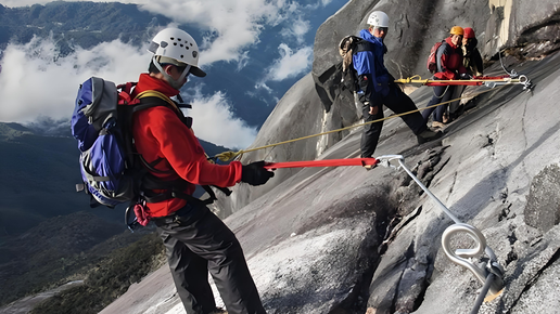 Одна из самых больших опасностей в альпинизме и скалолазании — риск падения. Падение даже с небольшой высоты может привести к травмам, которые изменят всю жизнь, например к перелому позвоночника, или к летальному исходу. В традиционном восхождении, при использовании альпийского стиля, альпинист прикрепляется к другому с помощью верёвки. Если один из них упадёт, другой должен будет его удержать, обычно для этого нужно мгновенно лечь на снег, упереться ледорубом и держаться, пока падение не прекратится...