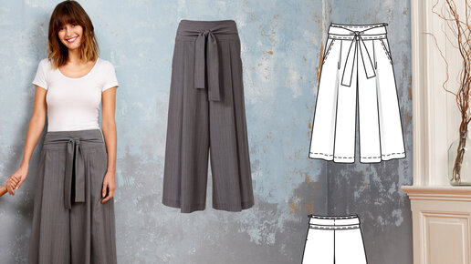 Несмотря на наличие разнообразных деталей, модель не сложная. Точно следуйте нашей пошаговой инструкции и пополните свой гардероб классными кюлотами. Глубокие складки передних половинок кюлот подчеркивают экстраширину свободных брючин, а кокетка формирует прилегающий силуэт модели. Вам потребуется: - эластичная шерстяная ткань в продольную полоску шириной 140 см: разм. 36–40 – 2,20 м, разм. 42, 44 – 2,25 м; - флизелин G 785 шириной 90 см; - 1 потайная застежка-молния длиной 22 см и специальная лапка швейной машины для ее притачивания...