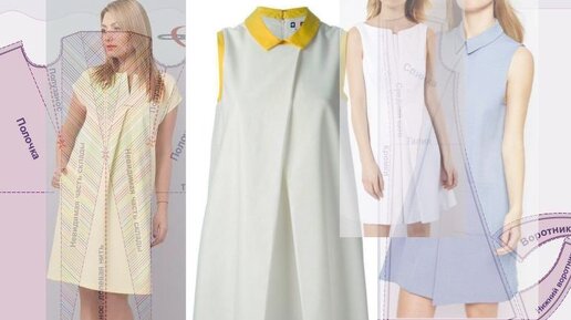ПДФ файлы для печати и сборки выкройки своими руками летнего платья геометрия для полных от 52 до 64 размера и выкройки платья размеров от 40 до 52. Уровень сложности пошива средний. Несколько отмоделировав основную выкройку можно изменить рукава и воротник в фасоне этого платья. Из чего сшить летнее платье и расход ткани Летнее платье можно сшить из льна, плательной джинсовой ткани, поплина или ситца. Расход на платье трапеция «геометрия» с рукавом составит для маленьких размеров 220 – 230 см, а для больших 280 – 290 см...