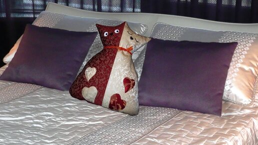 Кошачья тема в подушечном мире эксплуатируется на всю катушку. И я не осталась в стороне. Взяла эту не свежую идею и сшила свой вариант парочки котиков. В данной вещи я поставила во главу угла не игрушечность, а функциональность. То есть, это изделие в полной мере - подушка, которую можно подкладывать и под голову, и под спину, и под локоть. На ней нет лишних деталей, и она достаточно проста по форме. Чехол съёмный, молния в нижнем шве. Счастливые путешественники Я сшила три таких экземпляра, и все они укатили за границу - в Швецию и на Кубу...