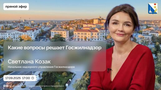 Какие вопросы решает Госжилнадзор? Как стать общественным инспектором? Почему севастопольцы чаще стали пользоваться мобильным приложением «Госуслуги.Дом»? Ответы на эти и не только вопросы можно услышать в прямом эфире с начальником надзорного управления Госжилназдора Светланой Козак...